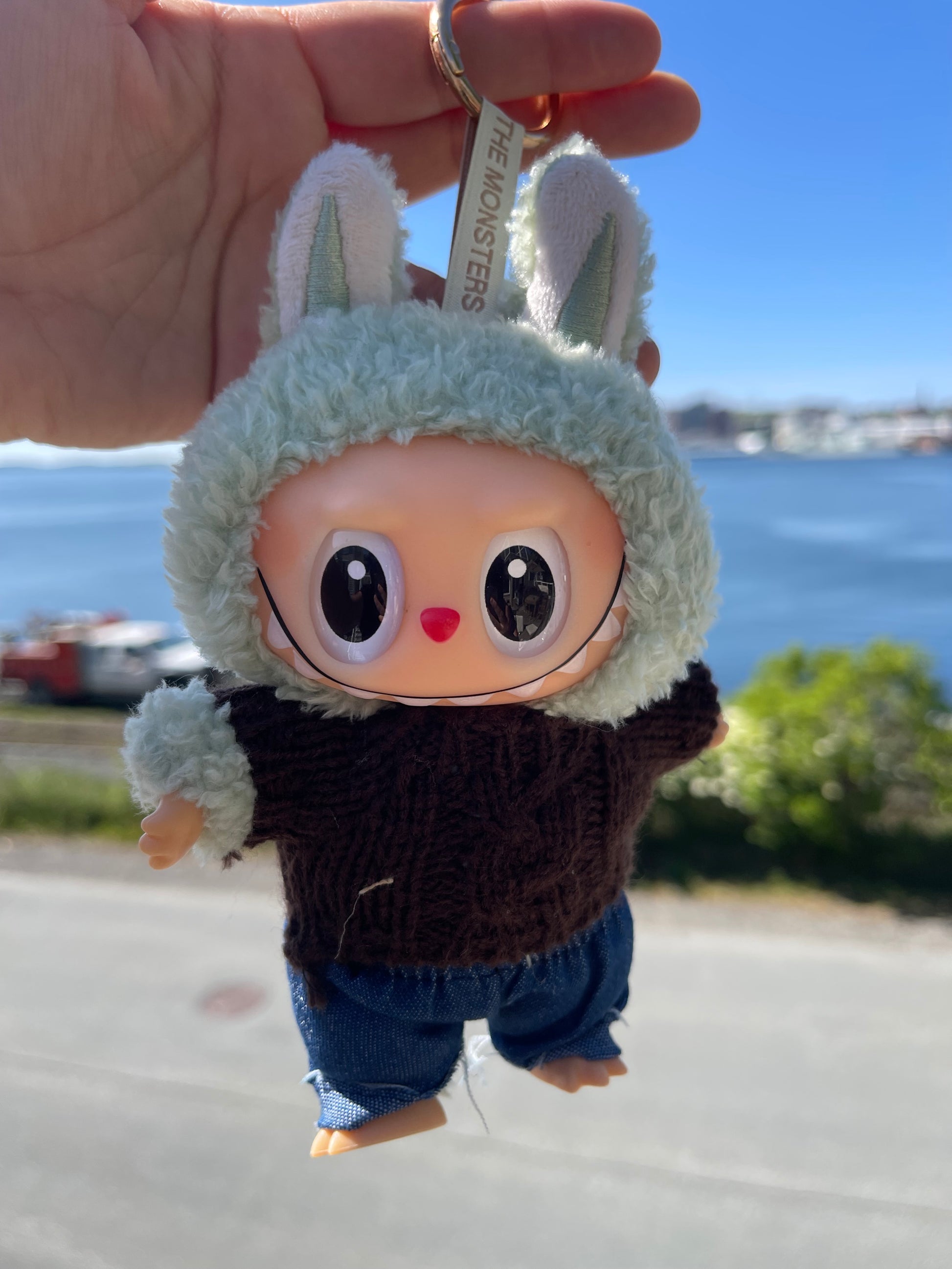 This handmade outfit fits Labubus perfectly.